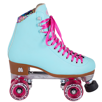 The Moxi Beach Bunny features a traditional high top boot with thoughtful touches including drum-dyed vinyl uppers for more authentic color saturation and additional ankle padding that provides comfort and security whether you’re cruising down the boulevard or ripping up your favorite skate park. Bright laces that shine in the sun add to the fashion-forward design of the Beach Bunny, and the moisture-wicking Dri-Lex™ liner is printed with a custom pattern. Complete with glittery high rebound urethane outdoor wheels and a pair of matching toe caps, the Beach Bunny is ready to accompany you on your next adventure!