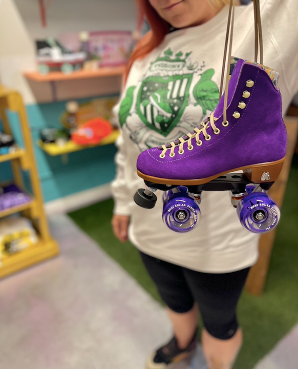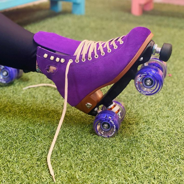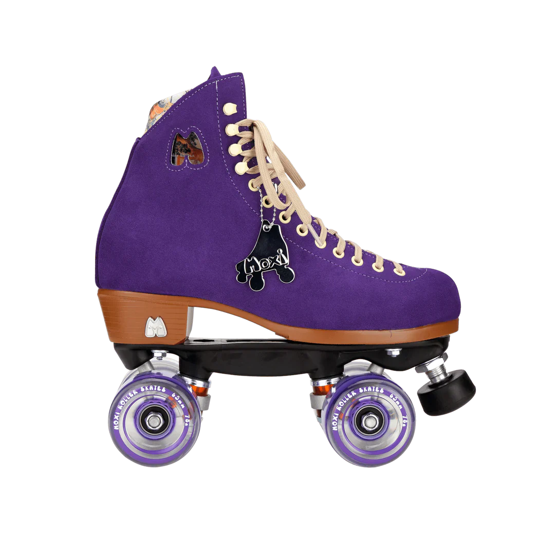 These suede high top roller skates can be used for indoor or outdoor skating. They come with Moxi Outdoor Wheels and an adjustable toe stop. Moxi Lolly Skates are a mid-range lifestyle skate, designed for recreation and street skating. The soft leather boot breaks in quickly with minimal discomfort and forms to your foot more than less expensive synthetic skate boots.